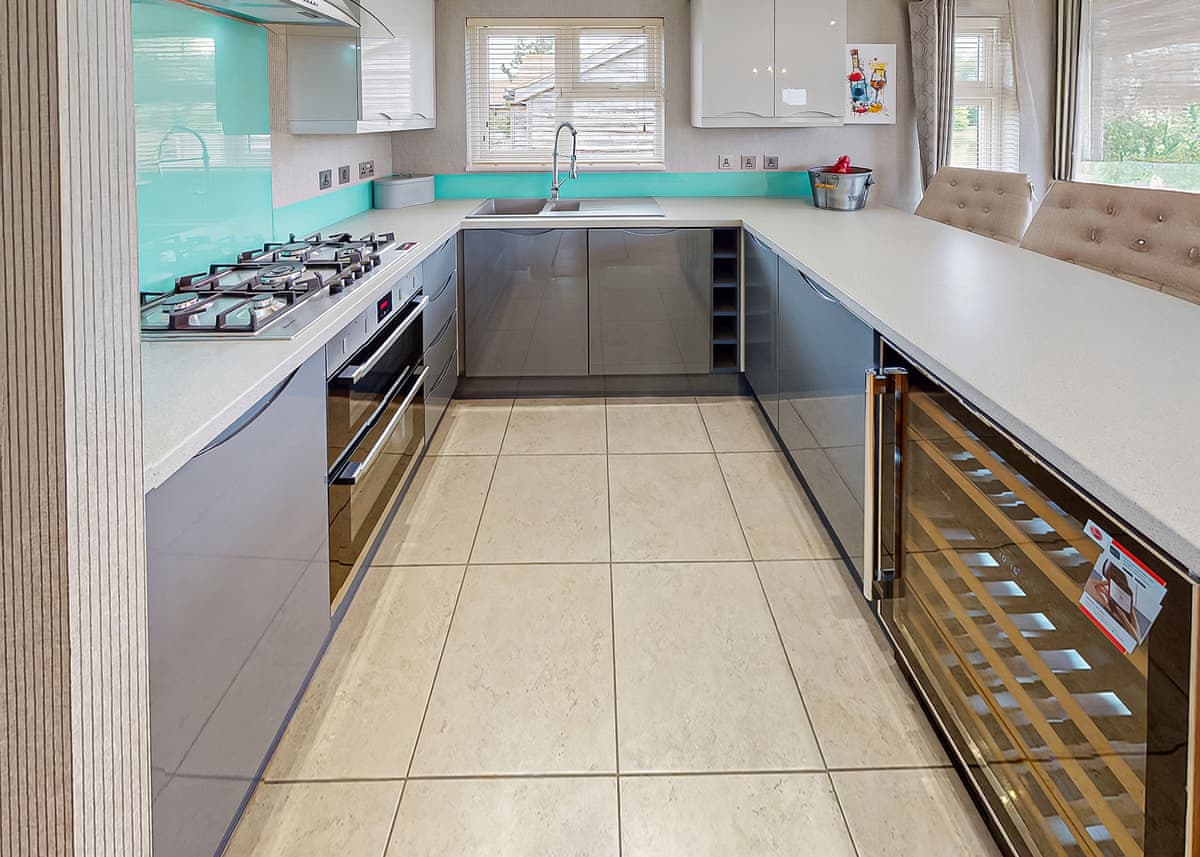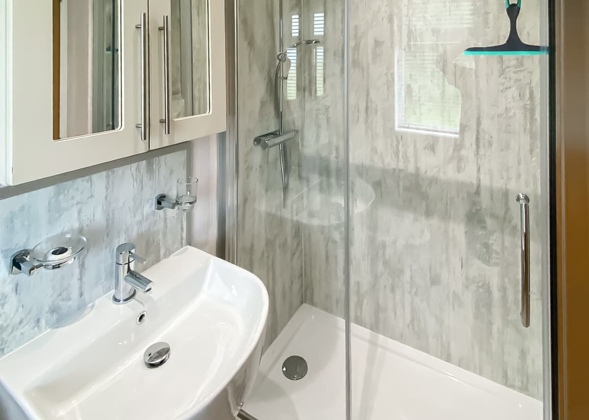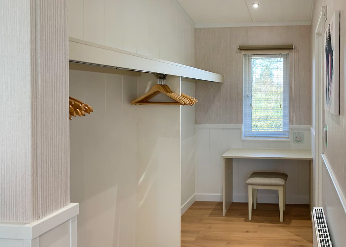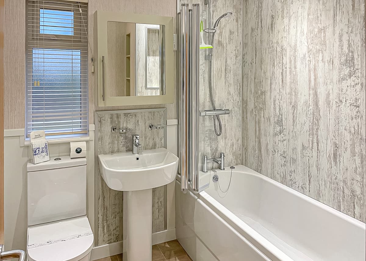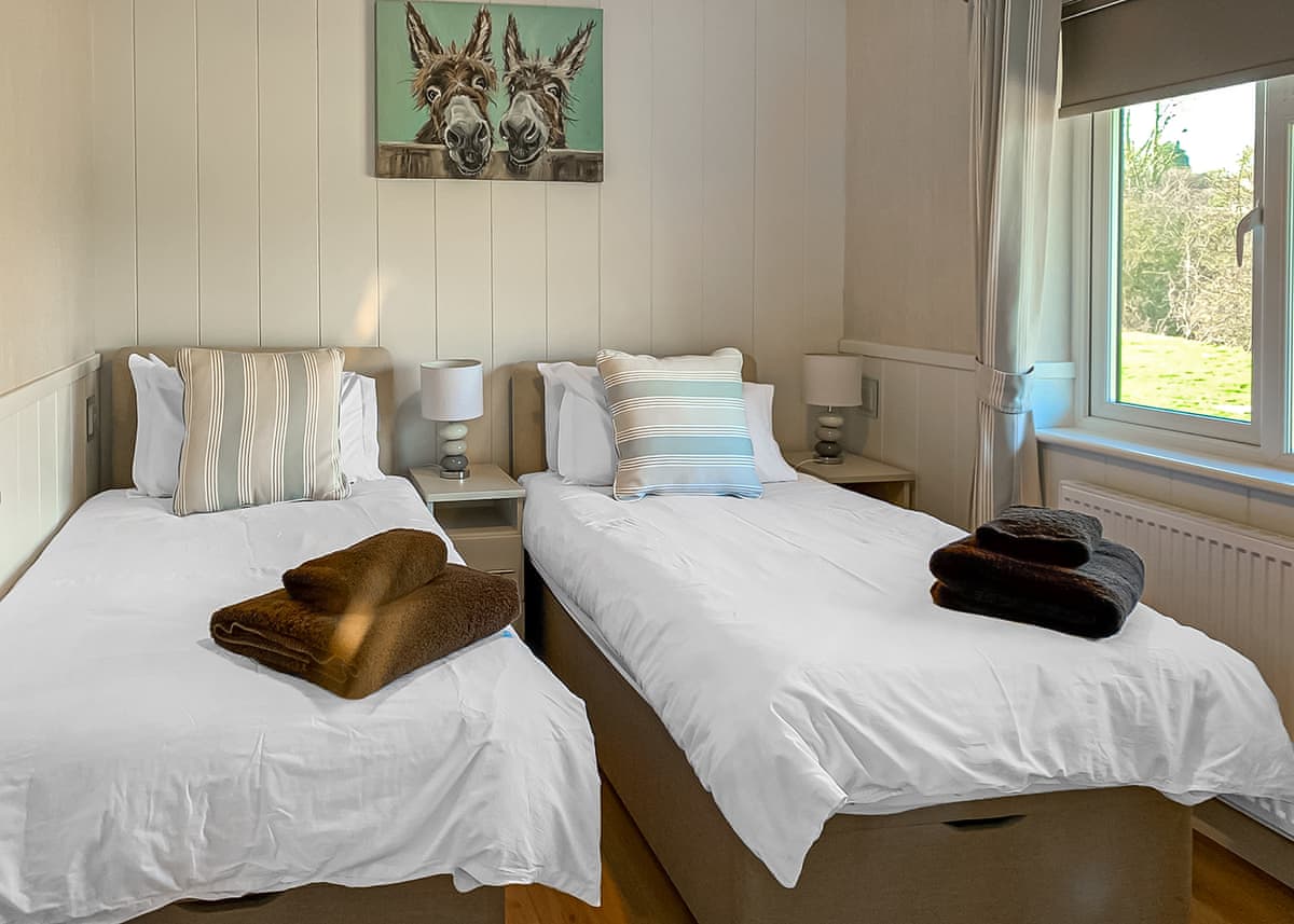 Kite Deluxe Lodge. This modern two-bedroom lodge features a master double bedroom (with king-size bed) comprising a luxury en suite complete with twin basin, underfloor heating and dressing area. The guest bedroom also with a king-size bed has access to the family bathroom which is fully tiled with a shower over bath and underfloor heating.
