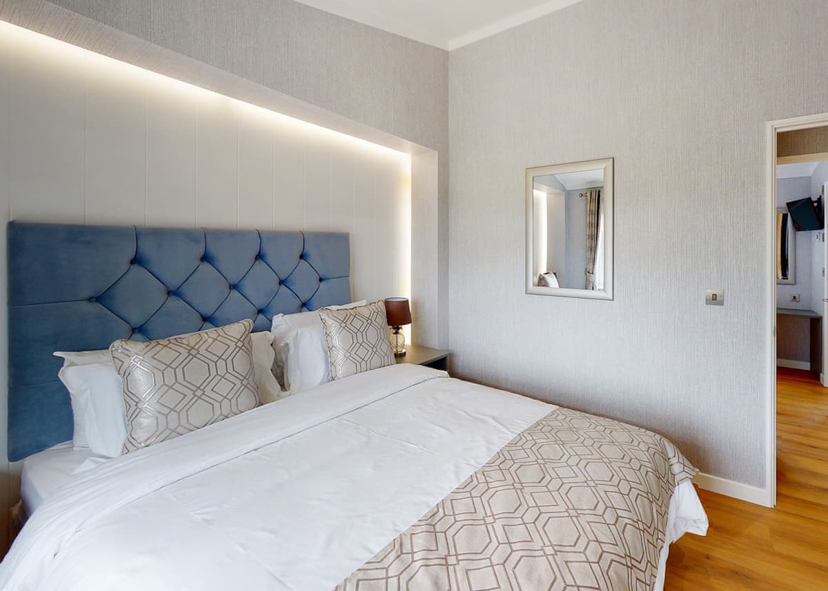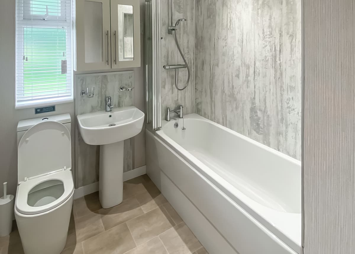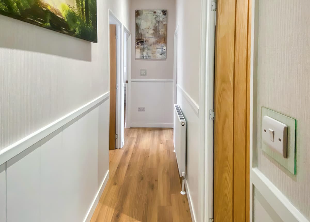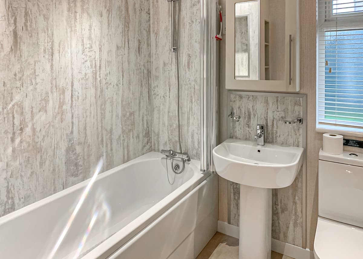 Kite Deluxe Lodge. This modern two-bedroom lodge features a master double bedroom (with king-size bed) comprising a luxury en suite complete with twin basin, underfloor heating and dressing area. The guest bedroom also with a king-size bed has access to the family bathroom which is fully tiled with a shower over bath and underfloor heating.