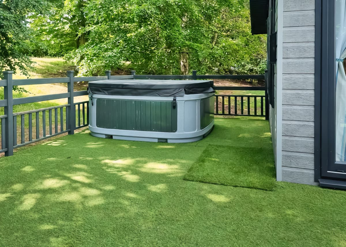 Luxurious and bespoke lodge, ideal for a family or couples retreat. Two king-size doubles, one with en suite shower and one twin. Shared bathroom with shower over bath. Spacious open plan lounge/kitchen/dining area with French doors leading to verandah with outdoor hot tub and outdoor furniture boasting lakeside views. On-site Parking
